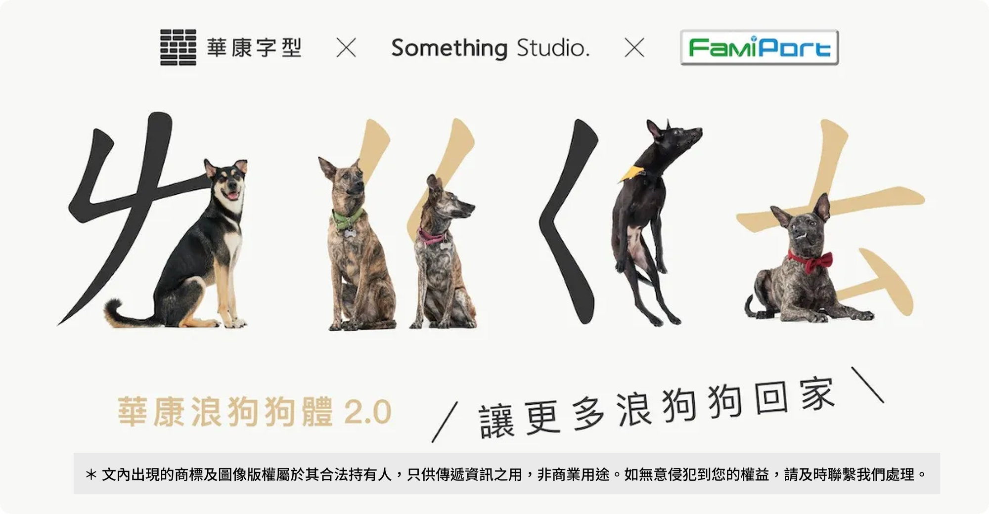 華康字型攜手三牲工作室推出「華康浪狗狗體 2.0」,將台灣街頭的浪浪身影,融入注音符號與字元筆畫中。新版本共新增 74 個注音文字與 10 組顏文字彩蛋,並以「黑/黃」兩款注音風格。