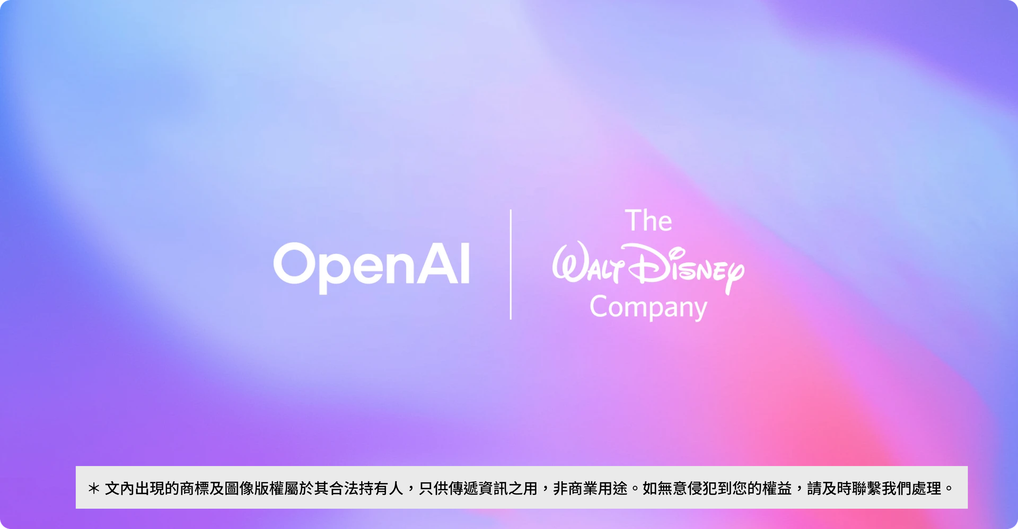 迪士尼與 OpenAI 達成為期三年的授權協議,讓 Sora 能依照使用者提示詞生成可供觀賞與分享的社群短片,內容可動用超過 200 位來自迪士尼、漫威、皮克斯等角色與其經典場景元素。