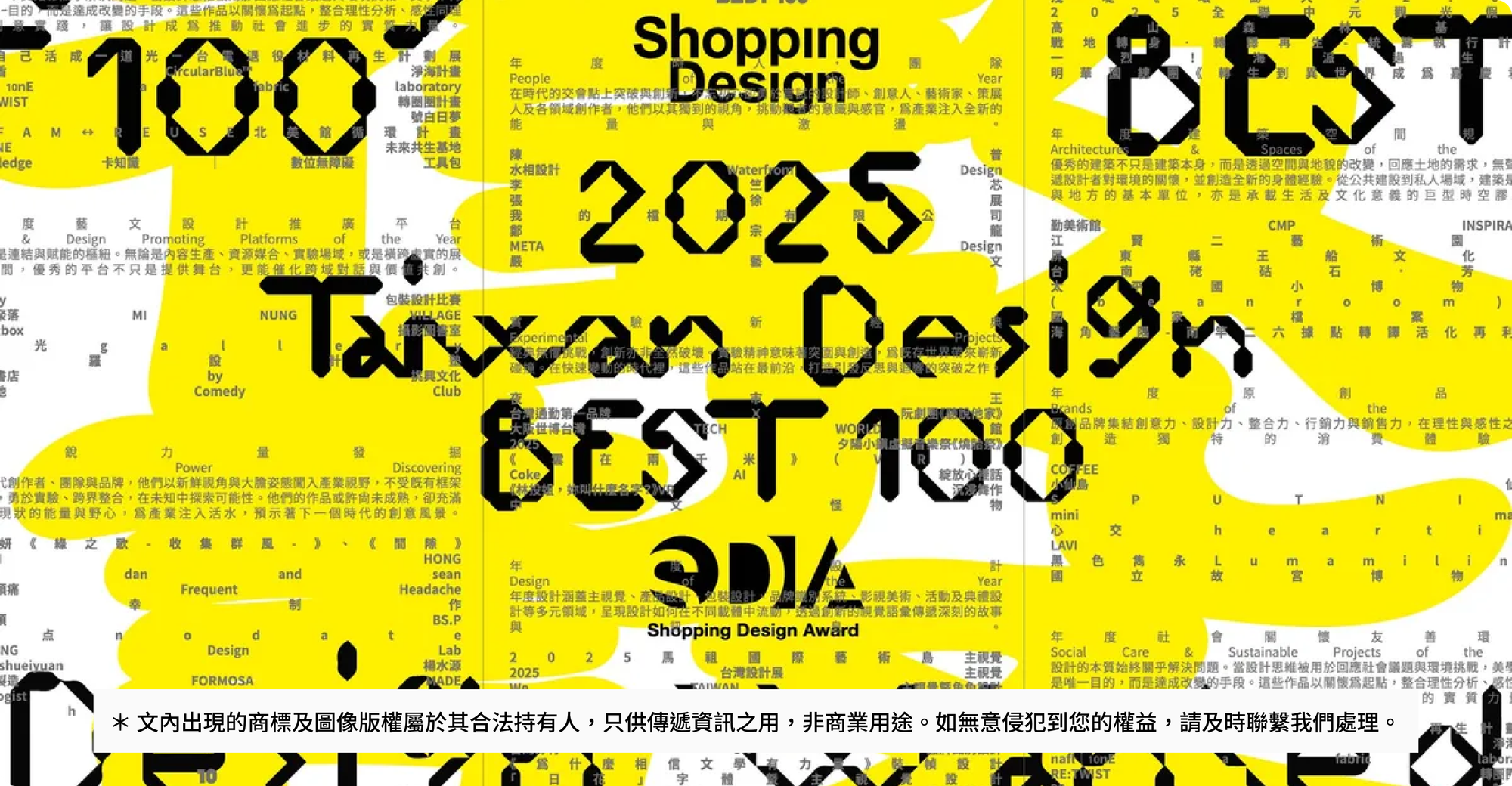 2025 台灣設計 BEST100 名單正式公布,從產品、視覺、空間到服務與系統設計,呈現出台灣設計近年的集體樣貌。