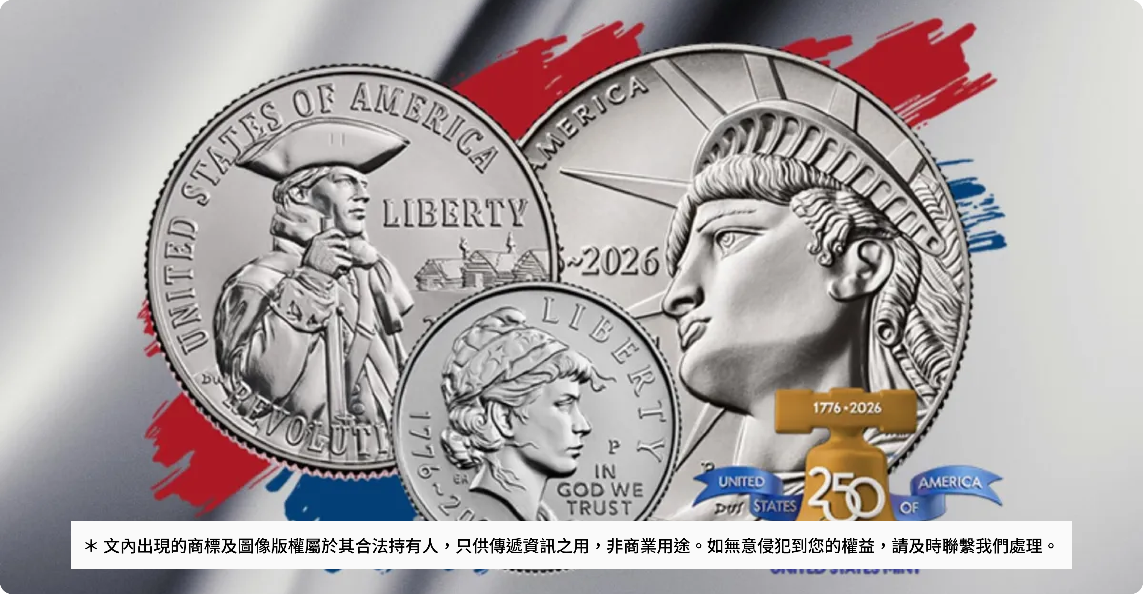 美國 50 美分硬幣在 2026 年迎來全新設計,作為建國 250 週年紀念版本,正面採自由女神近景,背面則呈現自由女神將火炬傳遞給新世代的畫面。