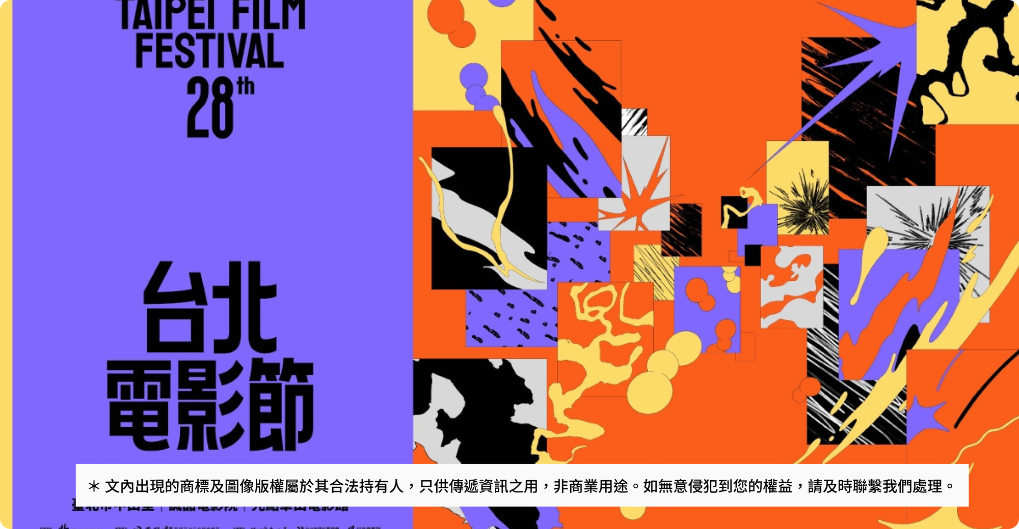 整體以暖橘、鮮紫與亮黃切分版面,再透過 X 型排列呼應北影蝴蝶標誌,讓主視覺同時承接影展精神與電影情感的流動,也把電影的觀看感受整理成更鮮明的識別語言與視覺節奏變化。