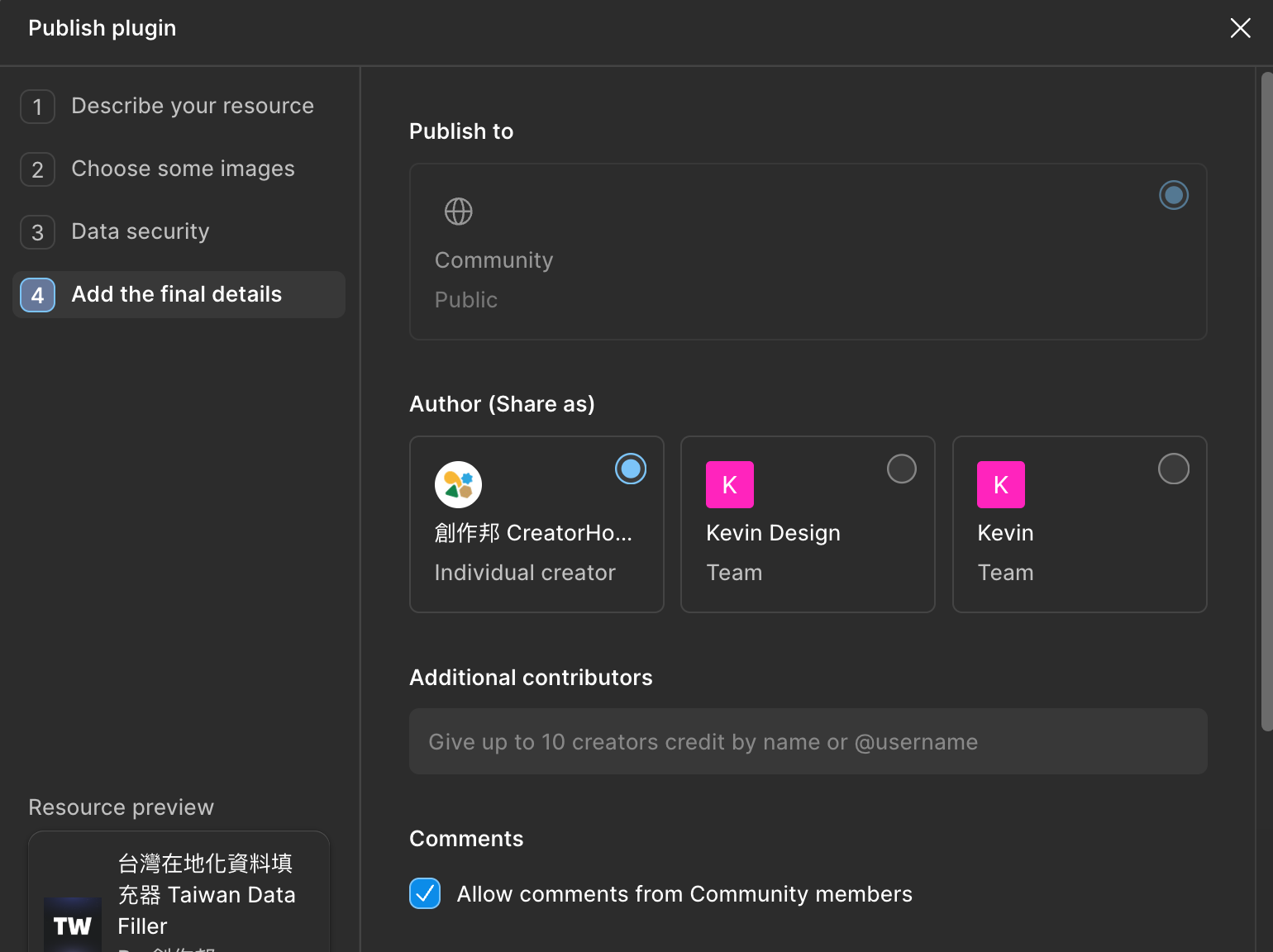 1.針對設計完成的 Figma Plugin 點選 Publish