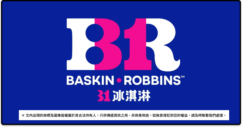 在台灣大家習慣叫它「三一冰淇淋」,但品牌正式名稱其實來自兩位創辦人 Baskin 和 Robbins。更巧的是,他們的 LOGO 不只是「BR」縮寫,還把數字 31 藏進去,用亮眼的粉紅色呈現。這個數字象徵「一個月 31 天,每天都能換一種口味」,讓 Logo 既是名字、又是品牌精神。如今口味早已超過 31 種,但這個小巧思依然是 Baskin Robbins 的經典符號。