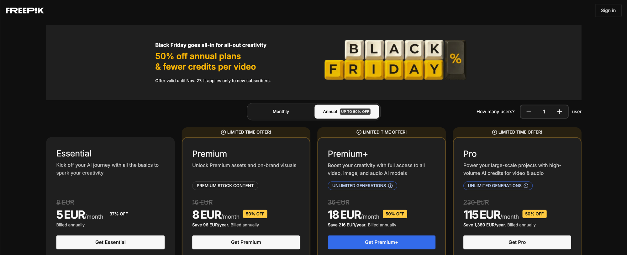 這沒有合作,不過我真的很喜歡他們,所以還是要來推,Freepik 從 AI 生成還不普及前我就一直訂閱使用,因為很好用,價格實惠。