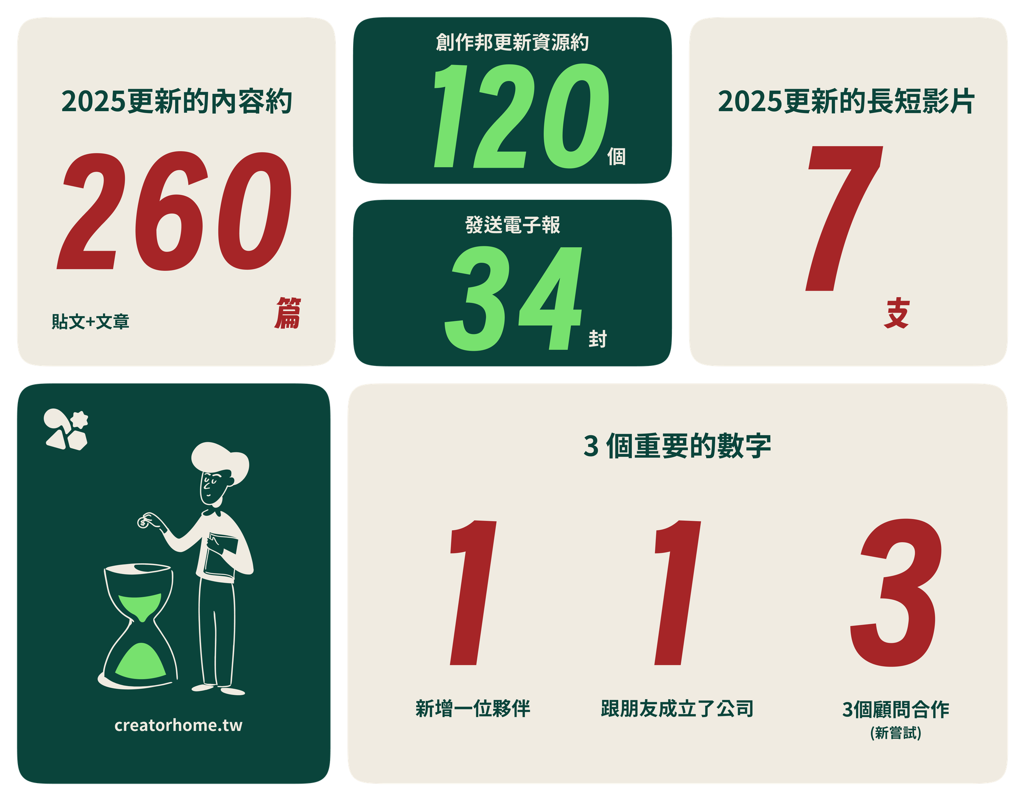 第三個數字「3」:這個數字對我來說很重要,其實我在自媒體上的收入不高,比例也越來越低,這一年我的收入更多是來自於顧問與接案,而這個「3」是我這一年比較長期合作的公司,感謝他們願意給我機會讓我提供顧問服務,因為這也是我過去沒嘗試過的服務。